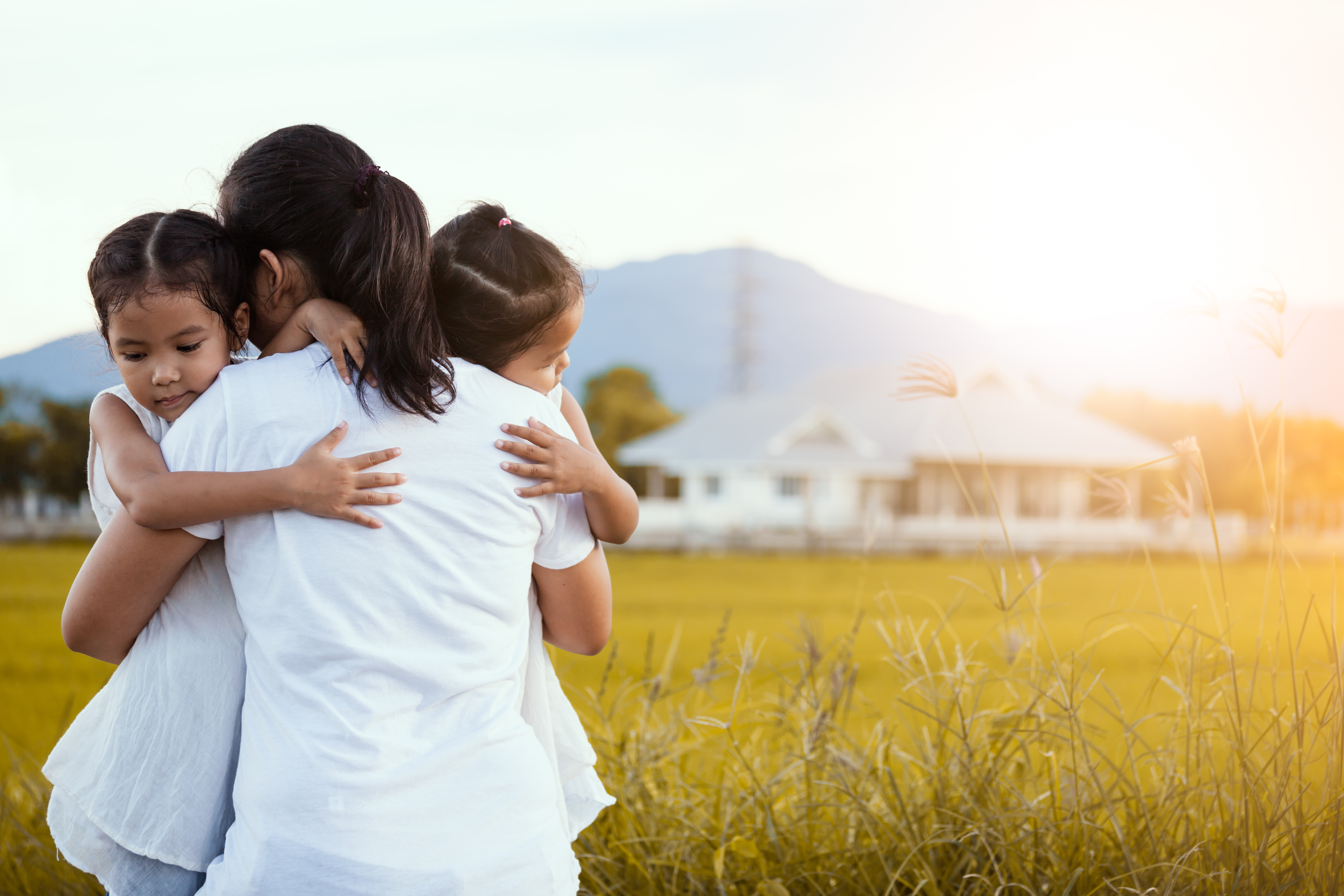 Happy Asian Little Girls Hugging Mother And Having Fun To Play With Mother In The Field In Vintage Color Tone January 12, 2026